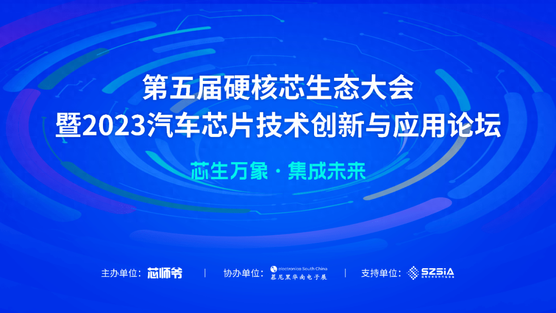 10月30日,慕尼黑华南电子展开幕首日,由芯师爷主办并承办、慕尼黑华南电子展协办、深圳市半导体行业协会支持的“第五届硬核芯生态大会暨2023汽车芯片技术创新与应用论坛”在深圳国际会展中心1号馆盛大开启!