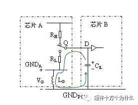 芯片A的输出变化,产生地弹。这对芯片A的输入逻辑是有影响的。接收逻辑把输入电压和芯片内部的地电压差分比较确定输入,因此从接收逻辑来看就像输入信号本身叠加了一个与地弹噪声相同的噪声。