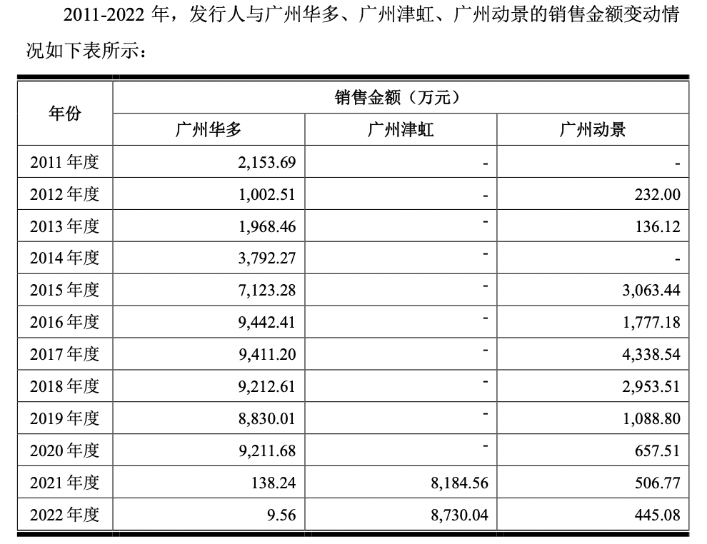 界面新闻注意到,自2011年成立开始,与尚航科技关联销售金额较大的主体为广州华多、广州动景,而报告期内公司对其销售金额大降,而对广州津虹的销售金额大增。
