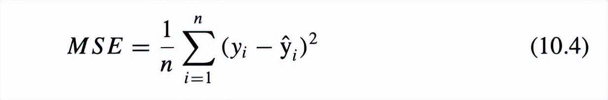 均方误差(MRE)是一种估计量,用于衡量误差平方的平均值,即预测值与实际值之间的差异。这种差异是由于随机性或者是因为预测值没有考虑到可能产生更精确估计的信息。均方误差是一种风险函数,对应于二次损失的期望值。其计算方式如下(参见公式10.4):