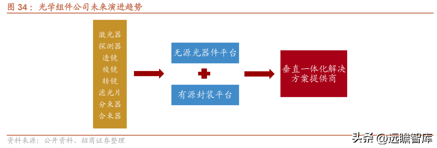 光学平台型公司未来可以提供完整的一体化解决方案。激光雷达中包含多种元器件,而具备垂直一体化优势的平台型公司有望从个别光学组件切入主流市场,并逐步提供其他重要的光学组件产品,以及有源器件封装服务,大幅增加单雷达的价值量,进一步打开业绩空间。