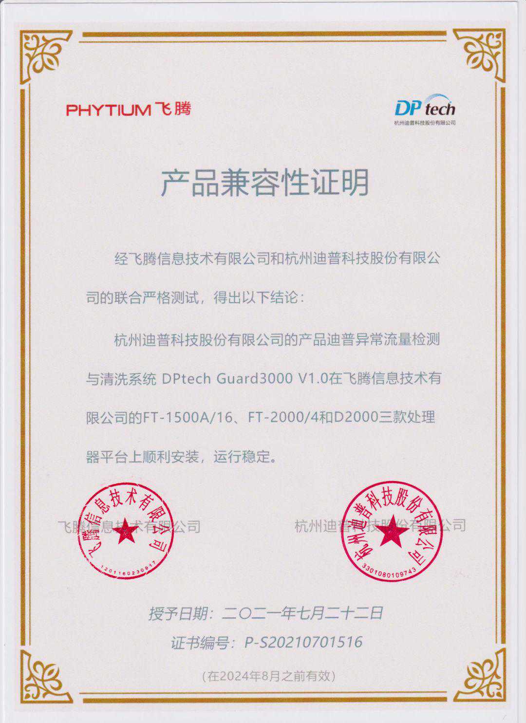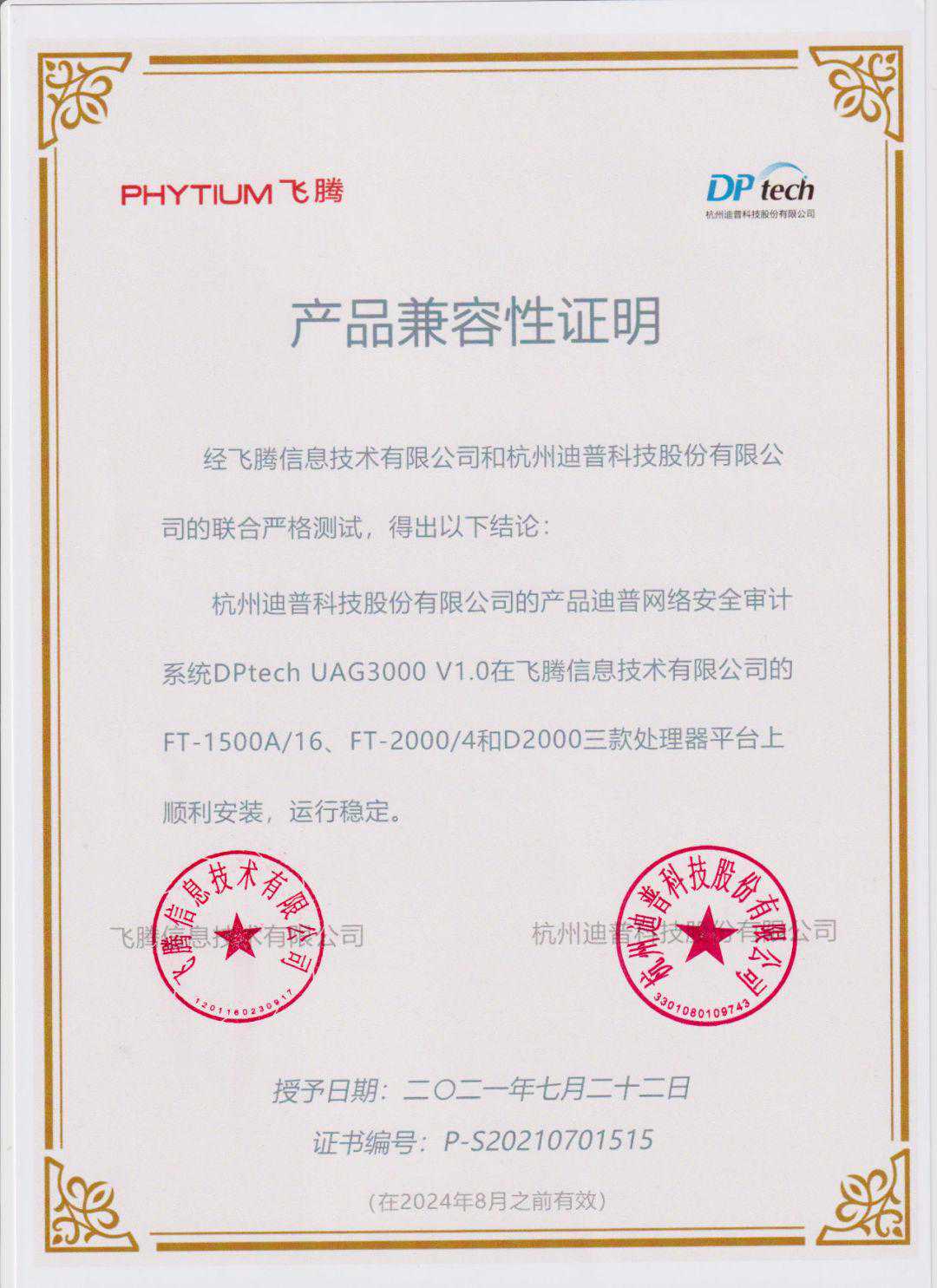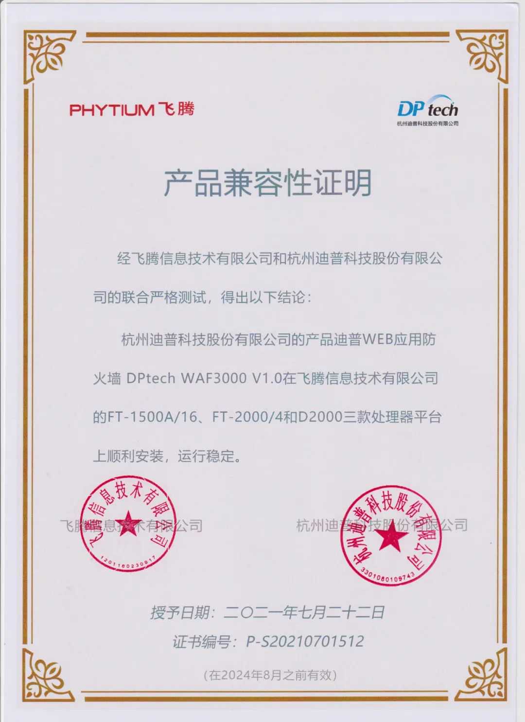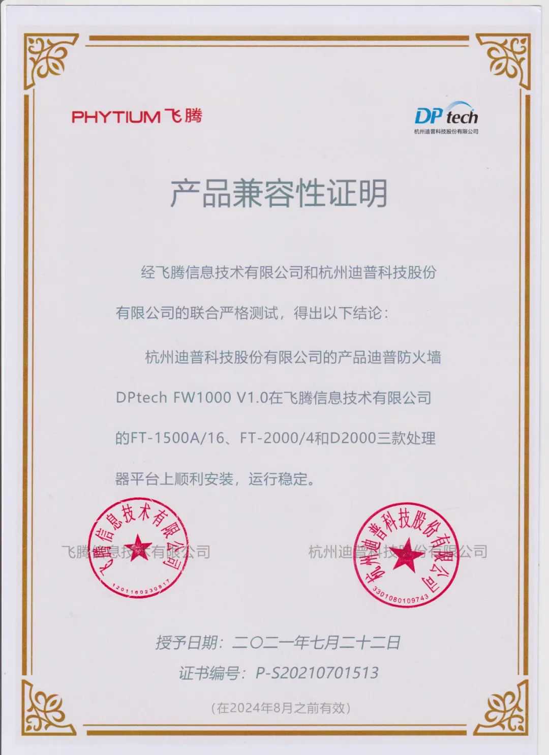 近日,来自迪普科技的10款安全防护产品,与飞腾腾锐D2000、FT-2000/4和FT-1500A/16处理器完成兼容适配,进一步扩展了飞腾CPU的产品形态和应用领域,更好地满足各行业对基于自主算力的安全部署需要。