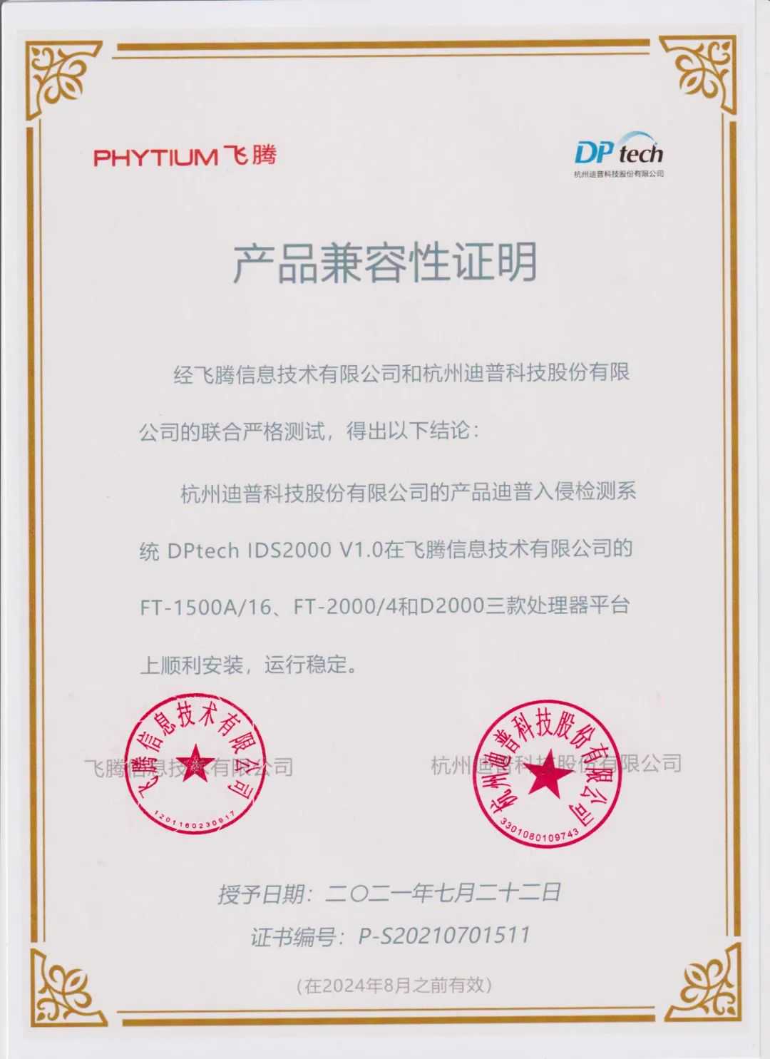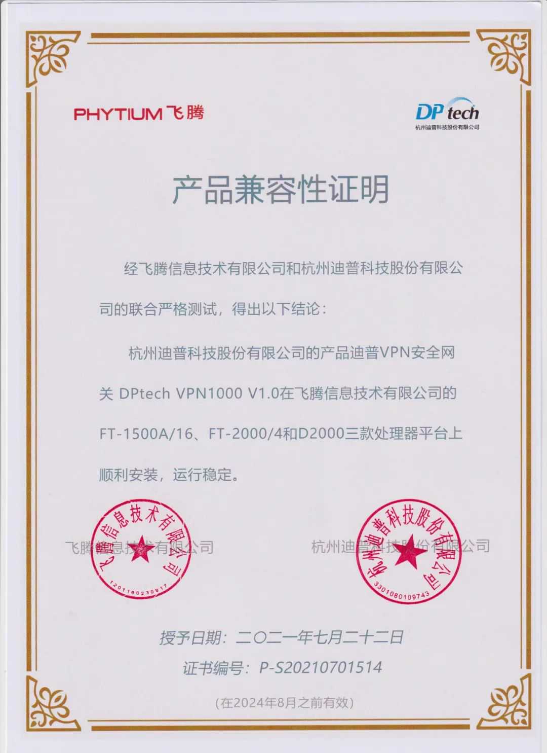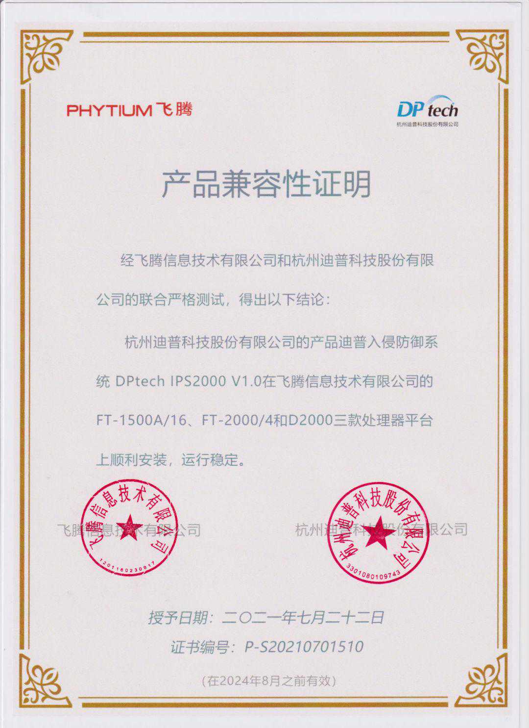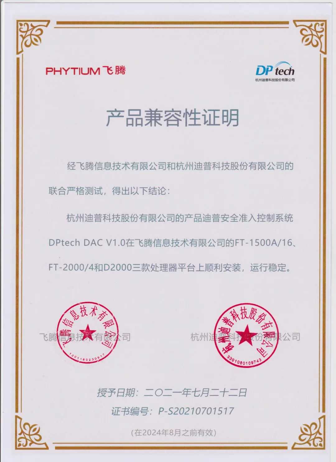 近日,来自迪普科技的10款安全防护产品,与飞腾腾锐D2000、FT-2000/4和FT-1500A/16处理器完成兼容适配,进一步扩展了飞腾CPU的产品形态和应用领域,更好地满足各行业对基于自主算力的安全部署需要。