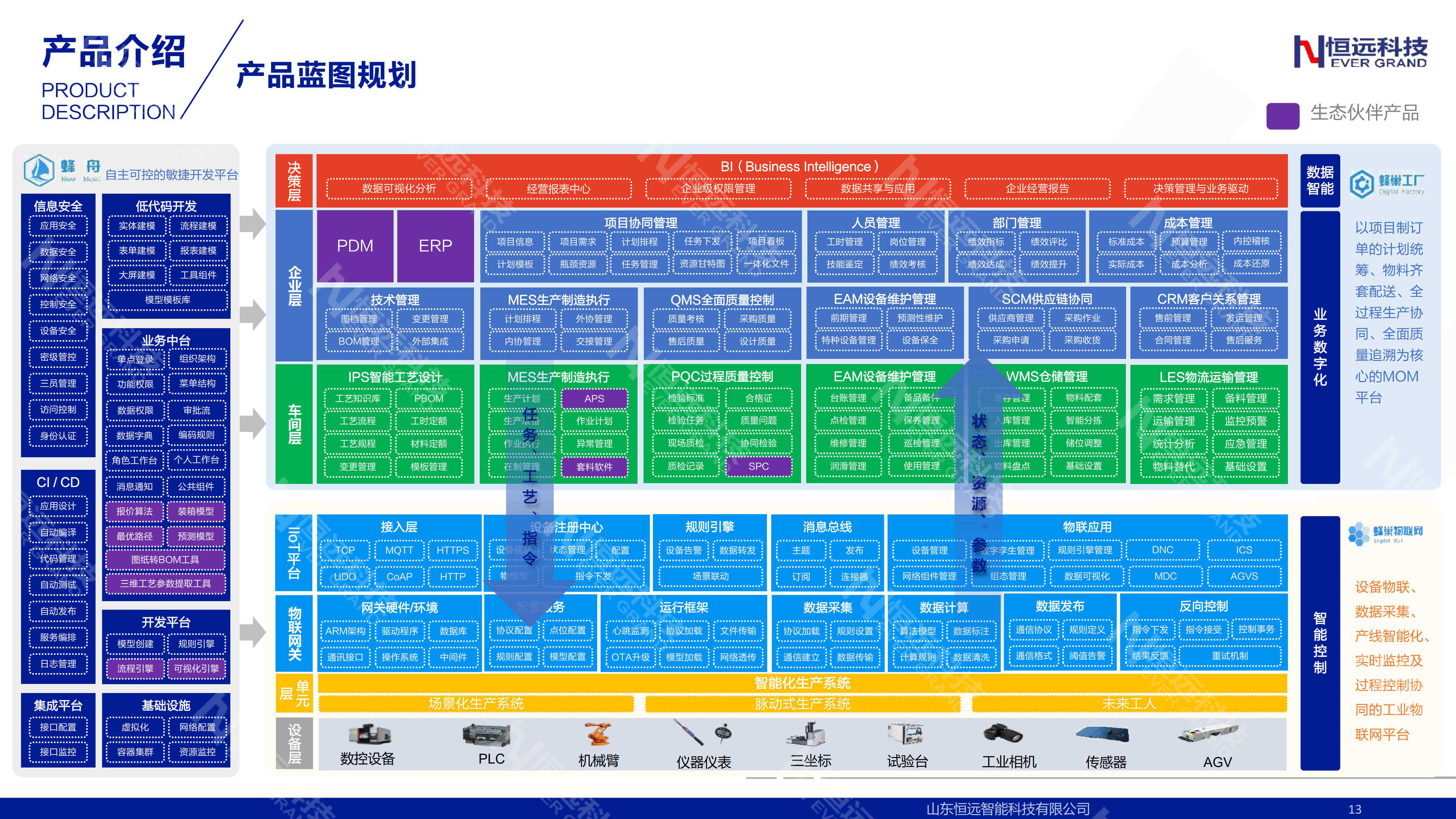 针对这一需求,恒远科技目前推出的MOM平台“蜂巢工厂”和IIoT工业物联网平台“蜂巢物联”,涵盖了从装备制造的销售订单、研发设计、物资采购、计划统筹、生产制造、质量管理、设备维护、数据采集、产线智能化、仓储物流等全业务的微服务应用套件,可以帮助企业实现全业务系统、全生产要素、全价值链的一站式数字化服务。