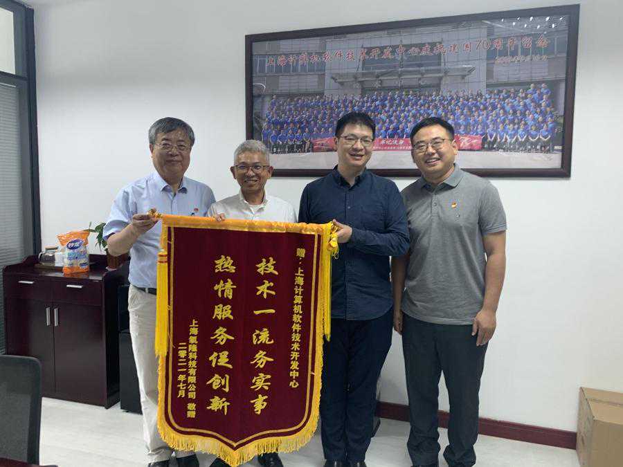 氧隆科技创始人王群龙向上海软件中心赠送锦旗。