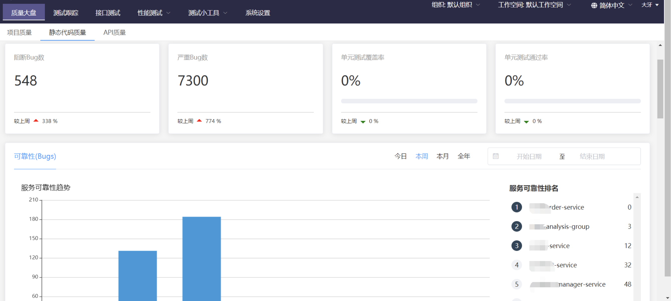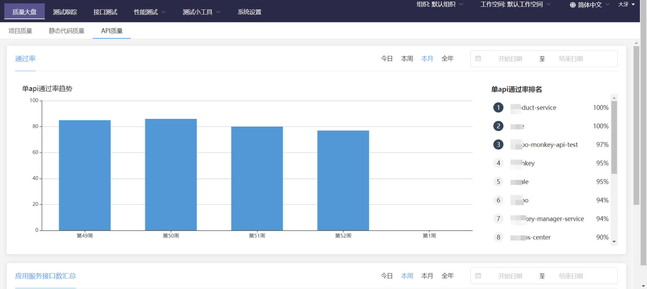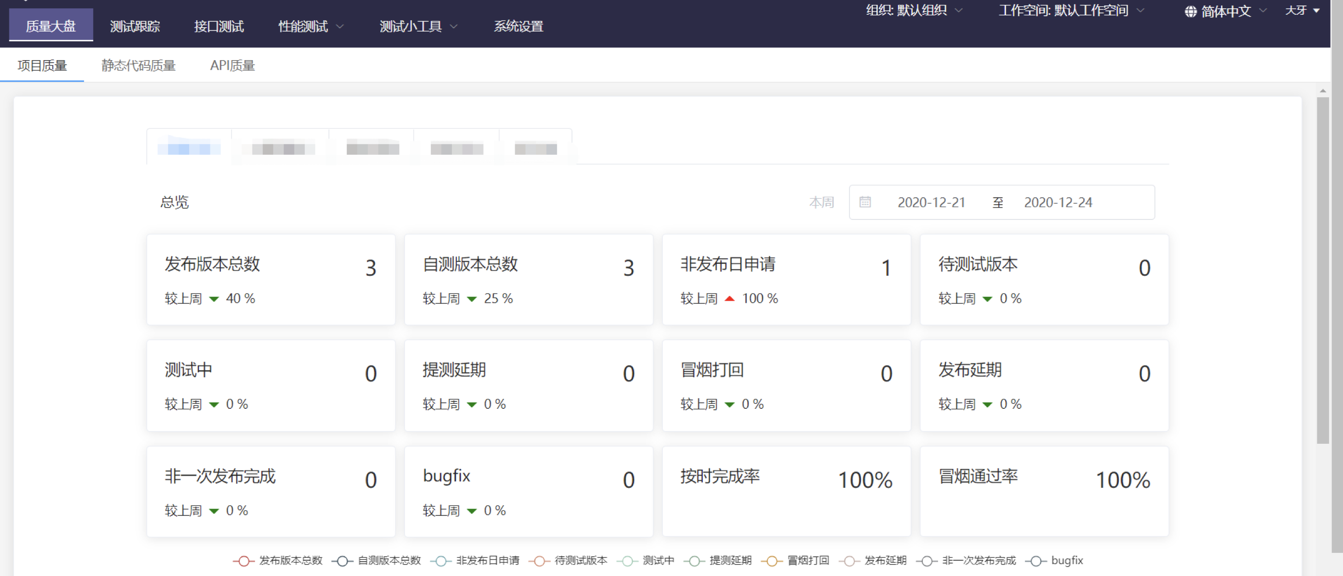 最明显和最直接的作用是目前有了质量大盘,通过质量大盘我们可以一目了然地看到研发任务、开发代码质量、接口自动化的各自统计视图;