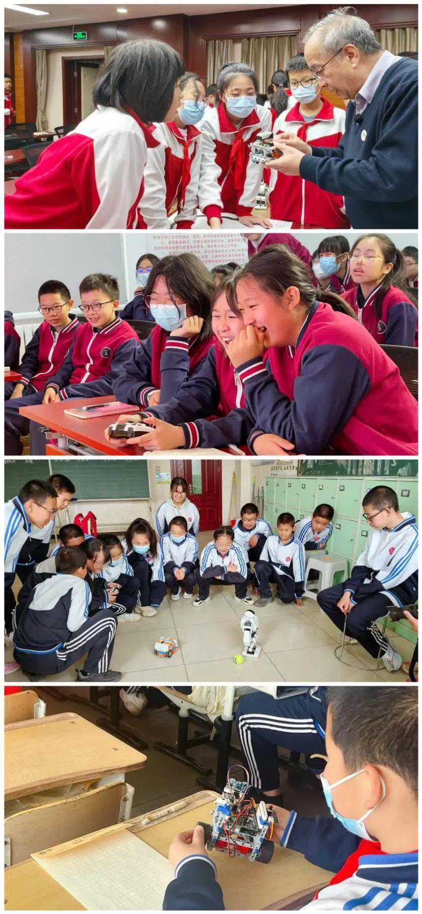 在北京新鲜胡同小学的“机器人示范课”课堂上,中国电子学会科技志愿者讲师沙有威通过“避障前行”“崖边行走”“循迹而行”等机器人程序设计实验,带领学生近距离观察机器人构造,学习机器人运作原理。课堂上,同学们学习热情高涨,一边体验机器人操作,一边主动向老师提问。“今天的学习让我特别有成就感,希望以后能有更多这样好玩的科普课,我想设计出更复杂的机器人!”一名同学兴奋地说道。