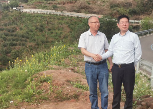 左二起:雅安市经合局科长王永利、雅安市雨城区经合局副局长高伟志、雅安市经合局副局长谭昌明、雅安市雨城区自然资源和规划局刘冰玉、周公山高宝村支部书记秦光基