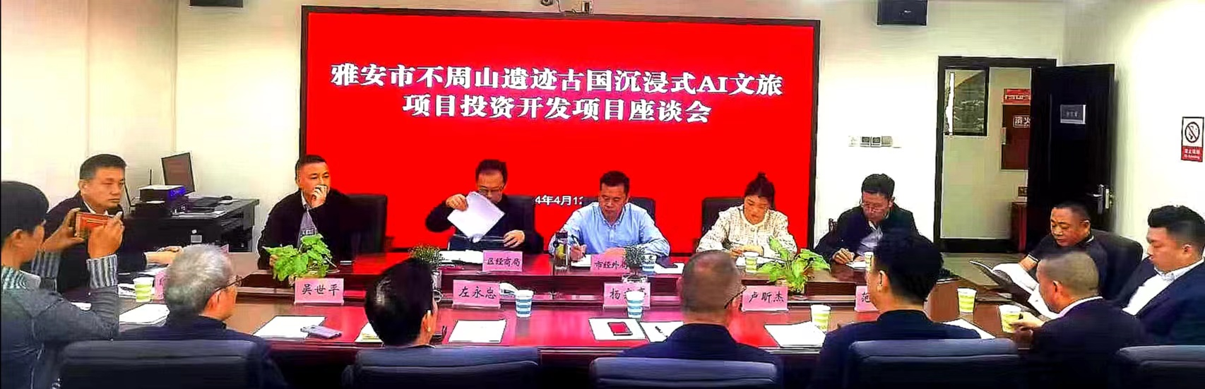 由中央广播电视总台牵头与广东玖顺控股集团和中铸控股有限公司联合组成的雅安经济考察团应雅安市政府邀请,考察了雅安经开区、雅云、体育中心等重点园区,走访了中恒天越野车汽车制造厂、雅安经开区数字规划馆、奥体赛事配套设施等项目,并与雅安市经合外事局达成战略合作协议。在雅安市政府会议厅,由市经合外事局、雨城区经合外事局、雨城区自然资源和规划局、周公山高宝村各位领导监礼,广东玖顺控股集团与雅安周公山天宝旅游有限公司签定了投资开发协议,广东玖顺控股集团与中铸控股有限公司决定联合投资30亿,打造开发“不周山遗迹古国”大数据智能文旅项目。