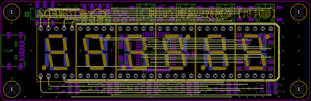 ⑥数码管驱动电路排列摆放在下方;