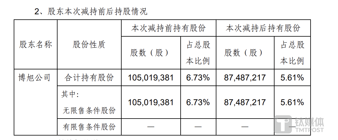 目前,博旭公司的减持尚未完成,若按照减持上限计算,本次减持后,博旭公司将不再是深科技持股5%以上的股东。(本文首发钛媒体App,作者|李若菡)