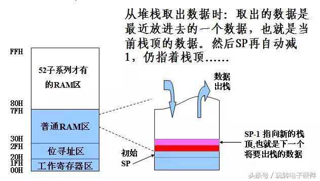 在片内RAM中,常常要指定一个专门的区域来存放某些特别的数据,它遵循顺序存取和后进先出(LIFO/FILO)的原则,这个RAM区叫堆栈。