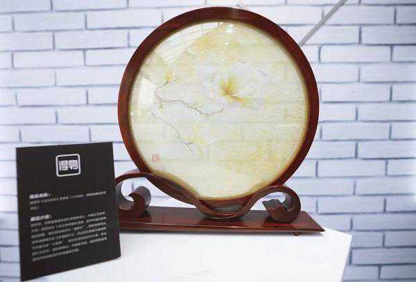 图说:由姚建萍监制的双面绣玉兰花摆件