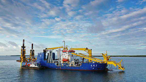 2019年12月30日,“天鲲号”在国内首次施工,助力连云港港打造10万吨级航道,并将首次挑战7公里的输送距离。