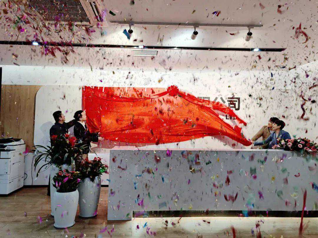 仪式现场,繁花锦簇、欢声笑语、礼花绽放、氛围喜庆,聪石科技董事长厉忠润、CEO孟玥圻,康利置地运营公司总经理郑天和、副总经理滕雄共同揭牌,共庆乔迁之喜。
