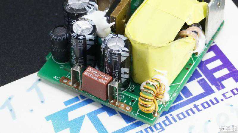 二次侧整流部分,次级肖特基整流,肖特基二极管使用较薄的铝制散热片。