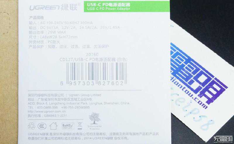 苹果newMacBook发布后,很长一段时间市面上都没有第三方USBPD充电器销售,让不少用户可以说有钱都买不到副厂配件,因此忘了带原装充电器的用户只能以USB5V的方式进行充电。近期,绿联看到了这块市场,推出了一款USB-CPD电源适配器,白色的外观,主打简约苹果风格。输入方面支持100-240V,输出采用了USB-C接口,提供有四档电压,分别是5V3A、12V2A、14.5V2A,20,跟苹果newMacBook原装充电器的29W总功率相当,并且多了一组20V输出。下面充电头网拿到一台量产的成品,通过拆解给大家分享内部电路设计与做工。
