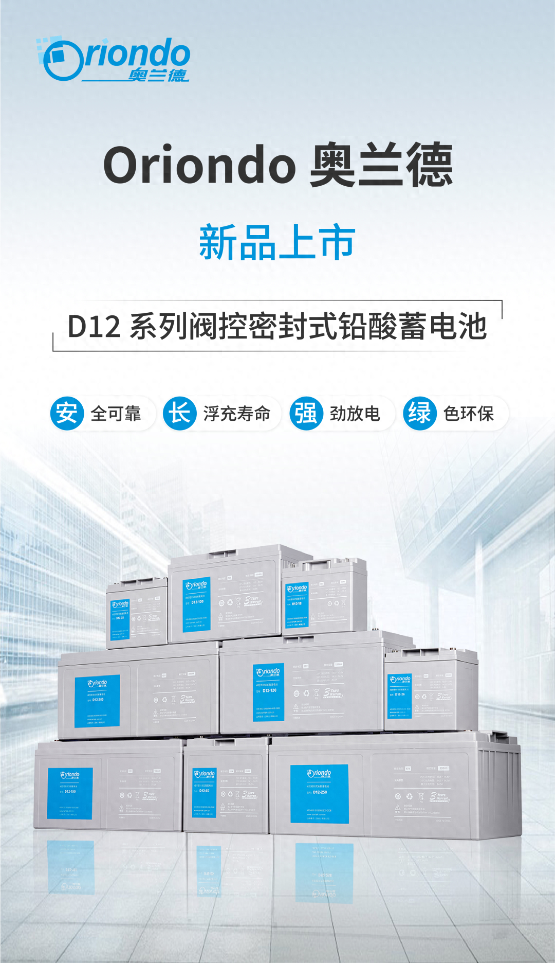 奥兰德D12系列电池新品,可配套UPS、EPS等使用,满足电信、电网、金融、轨道交通、石油化工、智能制造、医疗设备等多场景对蓄电池长寿命免维护、绿色低碳的备电及应急供电需求,实现供电系统的安全可靠与高效稳定。