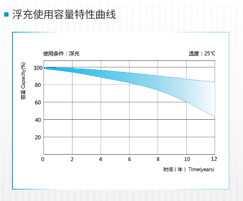 采用成熟的极板制造工艺和独特的配方,板栅耐腐蚀性能优越,长达10年以上的浮充寿命,使用期间免维护,更匹配UPS全生命周期应用,为用户大幅节省投入成本。