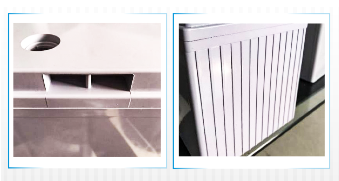 电池上盖自带扣手,方便搬运。外壳上的受力面增加了加强筋,既提升了抗膨胀能力,又增加了散热面积。