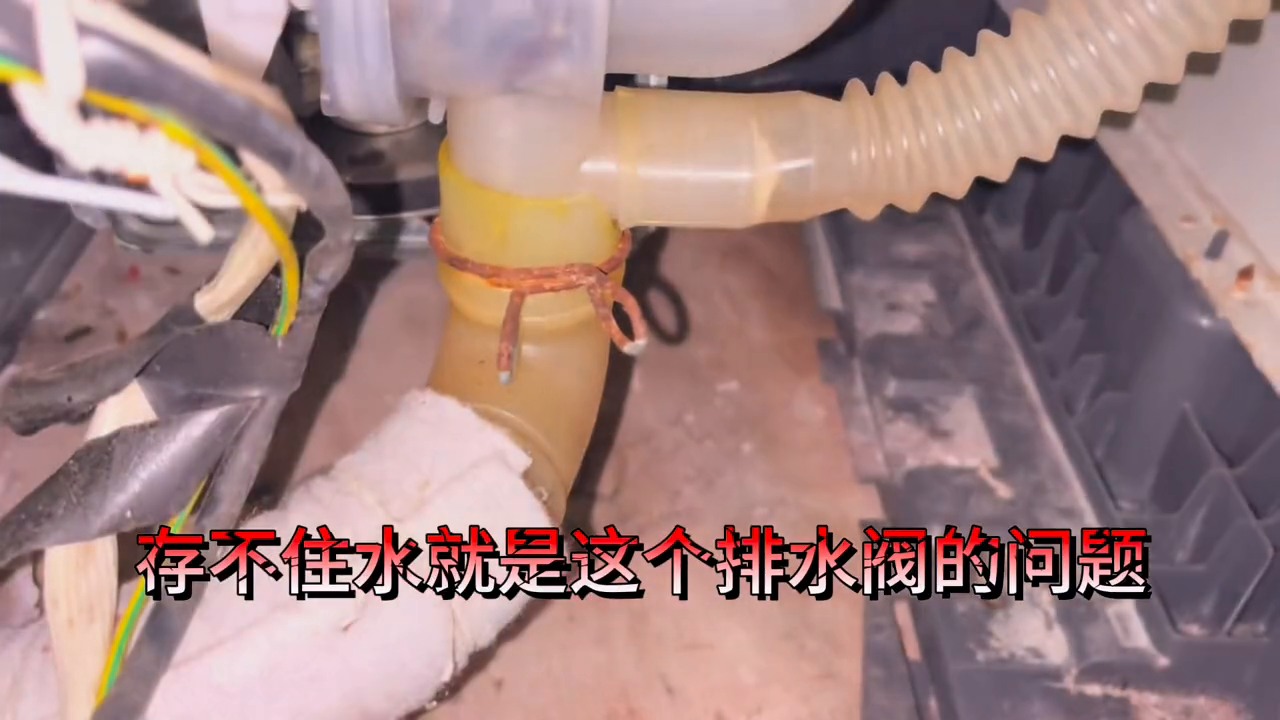 可以看到过滤网非常脏,把它清洗干净再装上,存不住水就是排水阀的问题,密封不严导致漏水,用手把阀门往后拉,水就会漏出来,用手去掏下有什么东西,原来是小朋友把笔放进去了,卡住密封圈所导致的。看看这出水量大了好多,也能存住水了没问题了,试了下没什么问题了。