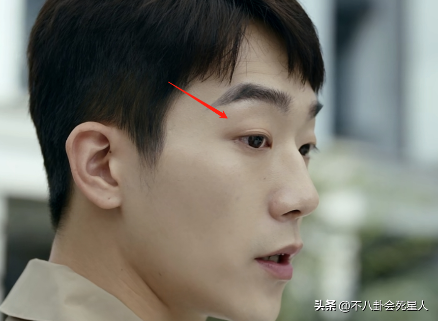 他在跟赵露思主演的《天雷一部之春花秋月》里,全程靠假眼皮撑场,他剧里穿帮的双眼皮贴叠起来,估计得有一个鞋垫那么高。