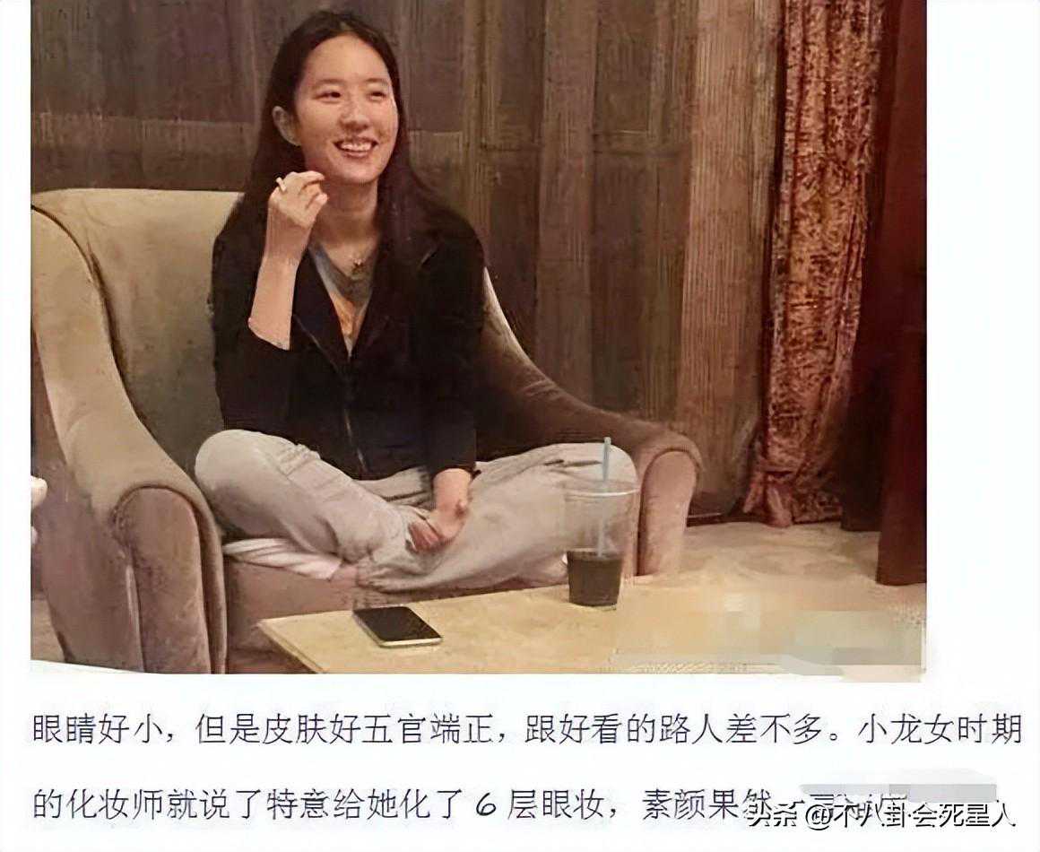 有网友说,以前多亏了6层精致眼妆和假眼皮神器,能够放大双眼、提升颜值。要不然按照刘亦菲生图里的眼睛大小和状态,估计还达不到获封神颜的程度。