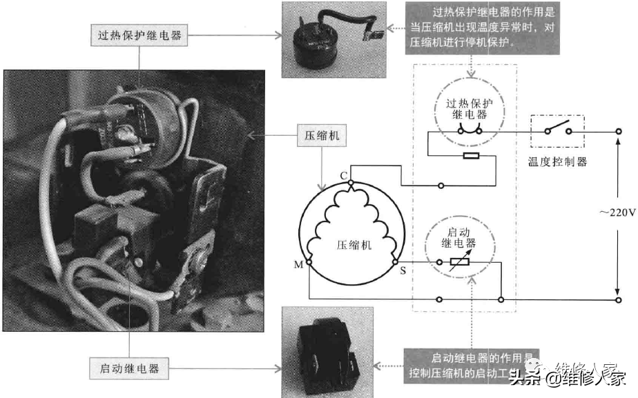 3、启动继电器和过热保护继电器