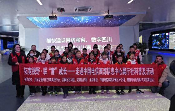 “童年不散场,信趣再启航”。2月23日,由武侯区新时代文明实践中心、区社科联、区妇联指导,中国电信四川公司、南虹村社区新时代文明实践站主办的“拓宽视野•联‘童’成长,走进中国电信西部信息中心展厅社科普及活动”如期开展。50余名社区青少年及家长走进中国电信展厅,近距离感受电信从高带宽、全业务承载、网络智能化角度的跨越式发展进程,体验城市信息化快速发展、科学技术带来的视觉震撼。