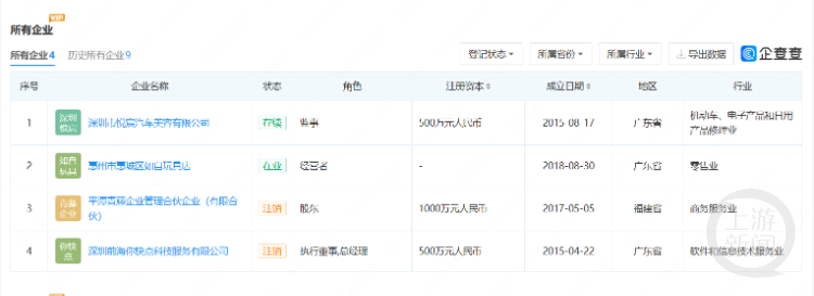王自如现在的身份是格力高管,上游新闻记者通过查询后发现,目前他仍是深圳市悦宸汽车美容有限公司的监事以及惠州市惠城区如自玩具店的经营者。