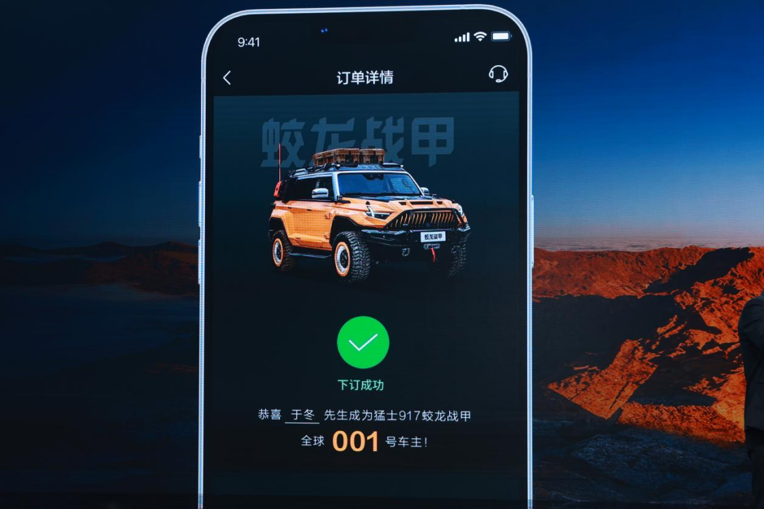 发布会现场,于冬更是当场下订了一辆猛士917蛟龙战甲,成为猛士917蛟龙战甲首位车主,彰显了对猛士品牌的高度认可。