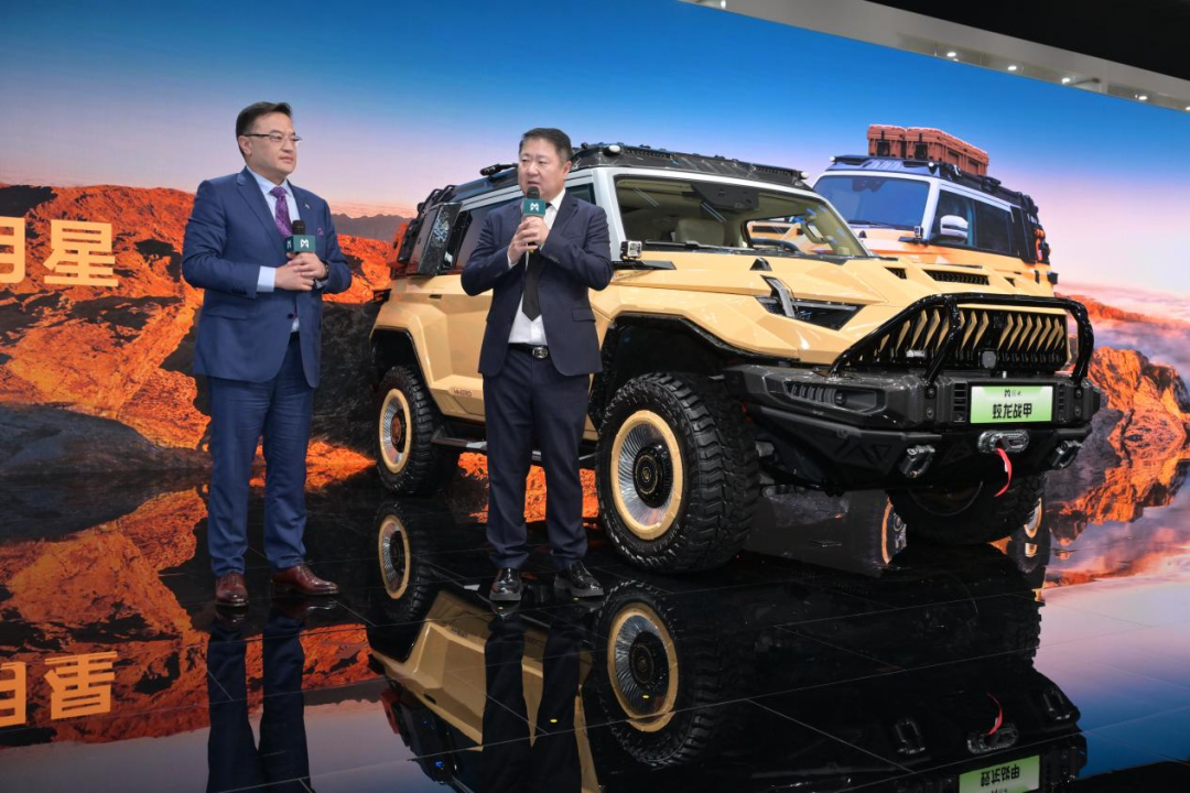 同时,在活动中东风猛士科技与博纳影业宣布达成战略合作,并推出首款联名车型—猛士917蛟龙战甲。博纳影业创始人、董事长于冬在猛士展台正式官宣电影《蛟龙行动》,并与东风汽车集团股份有限公司党委常委、副总经理尤峥共同为猛士917蛟龙战甲揭幕。同时,电影主创演员蒋璐霞、高戈亲临现场。
