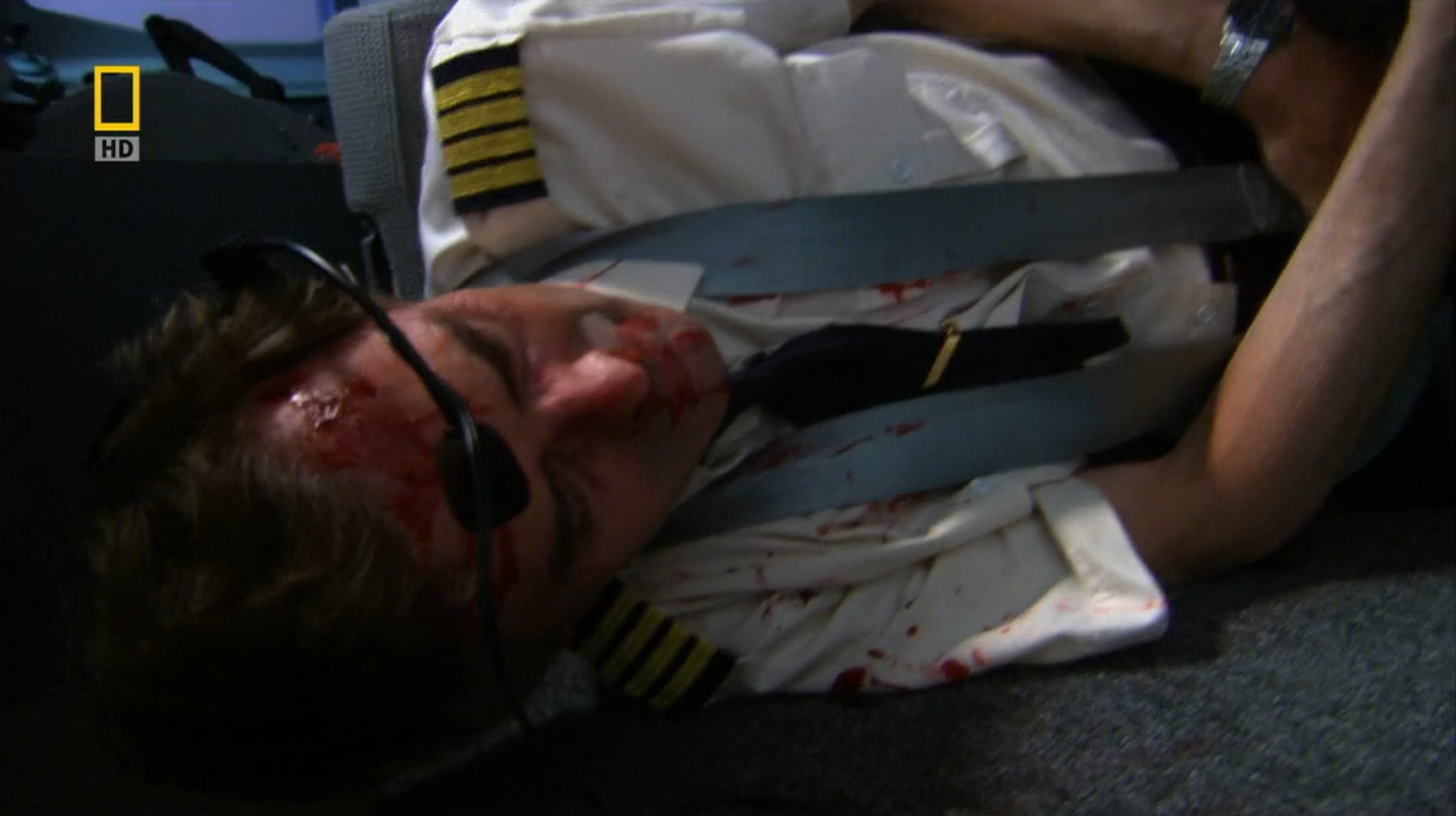 在飞机冲出跑道栽入溪谷洼地的一刹那,客舱内顿时人仰马翻,驾驶舱内情况最惨,机长座椅在震动中被扯离安装基座,艾伦·罗萨机长连人带座椅一头撞上了操作面板后翻到,顿时头破血流。