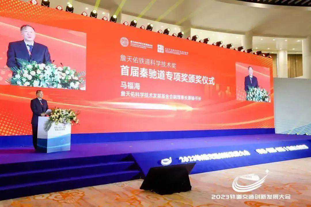 大会现场,首届“詹天佑铁道科学技术奖秦驰道专项奖”颁发,詹天佑科学技术发展基金会副理事长兼秘书长马福海致颁奖词,30位来自全国各地轨道交通企事业单位、科研院所和高等院校、上市公司、民营企业等单位的科技人员分别荣获贡献奖和青年奖。参会领导为获奖人员进行了颁奖并合影留念。