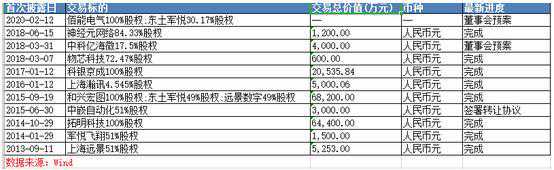从2013年开始,东土科技开始了一系列的高溢价并购。2013年,东土科技以现金5253万元、7倍溢价收购上海远景数字信息技术有限公司51%的股权;2014年,东土科技以6.44亿元的交易对价收购拓明科技100%股权,增值率高达857%,其中支付现金对价1.61亿元;2015年9月,东土科技以11倍溢价、5.5亿元的交易对价收购北京和兴宏图科技有限公司100%股权,其中现金对价1.65亿元;同时,东土科技还分别以7000万元和6200万元的价格收购了东土军悦49%股权及上海远景剩余49%股权;2017年1月,东土科技以2.05亿元现金收购北京科银京成技术有限公司100%股权,溢价超过21倍。
