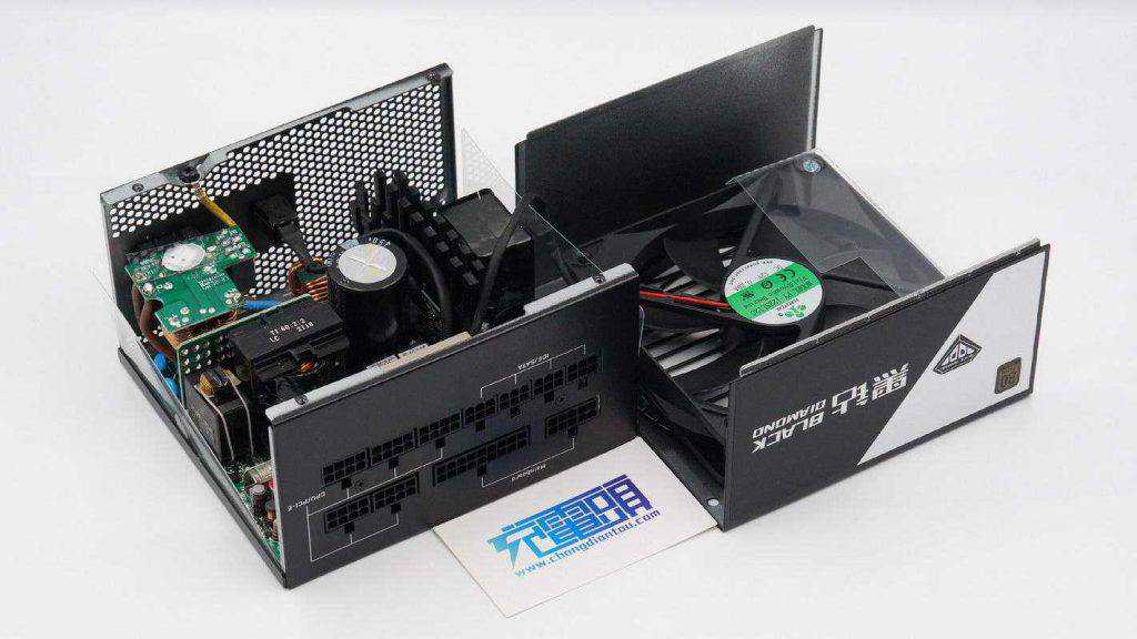 充电头网通过拆解了解到,先马黑钻750W金牌电源内置新鹏洋FDB轴承风扇,寿命更长噪声更低,支持智能启停。电源使用PFC+全桥LLC+同步整流+同步降压的架构设计,同步整流管使用导热垫连接到外壳散热,提升散热效果。