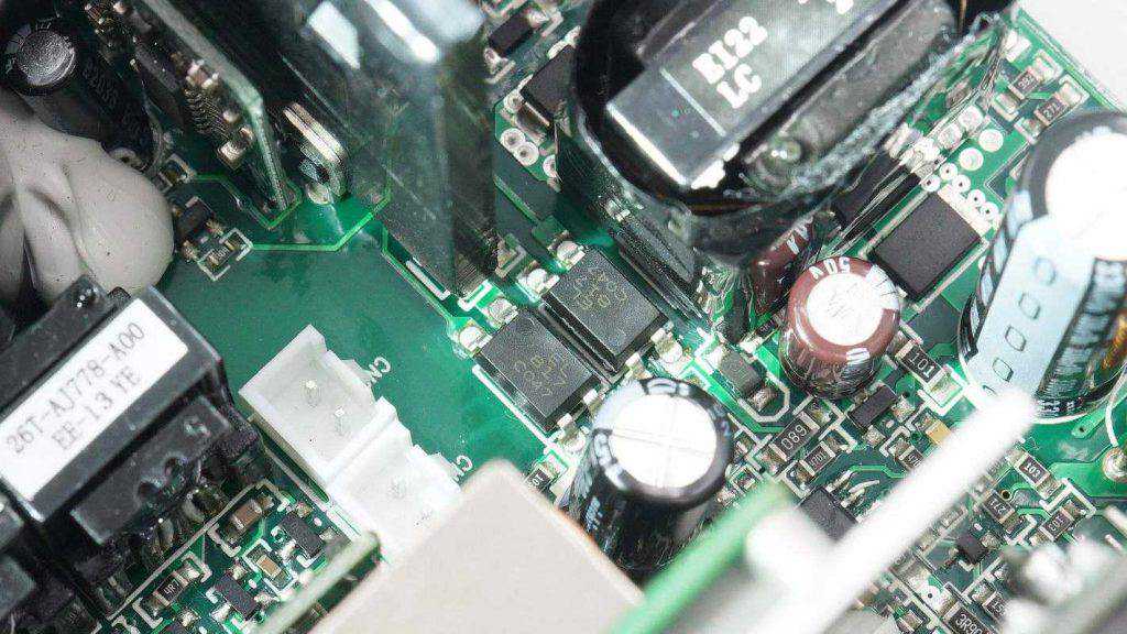 电源内部采用多块小板焊接,提高空间利用率。电源内部采用虹冠CM6500PFC控制器,CM6901全桥LLC控制器,PFC和LLC开关管均来自东微,PFC升压整流管来自泰科天润。同步整流管来自尚阳通,3.3V和5V降压使用茂达APW7159,内置管控IC用于电源输出监测。电源内部使用日系nichicon电容配合固态电容,用料扎实。