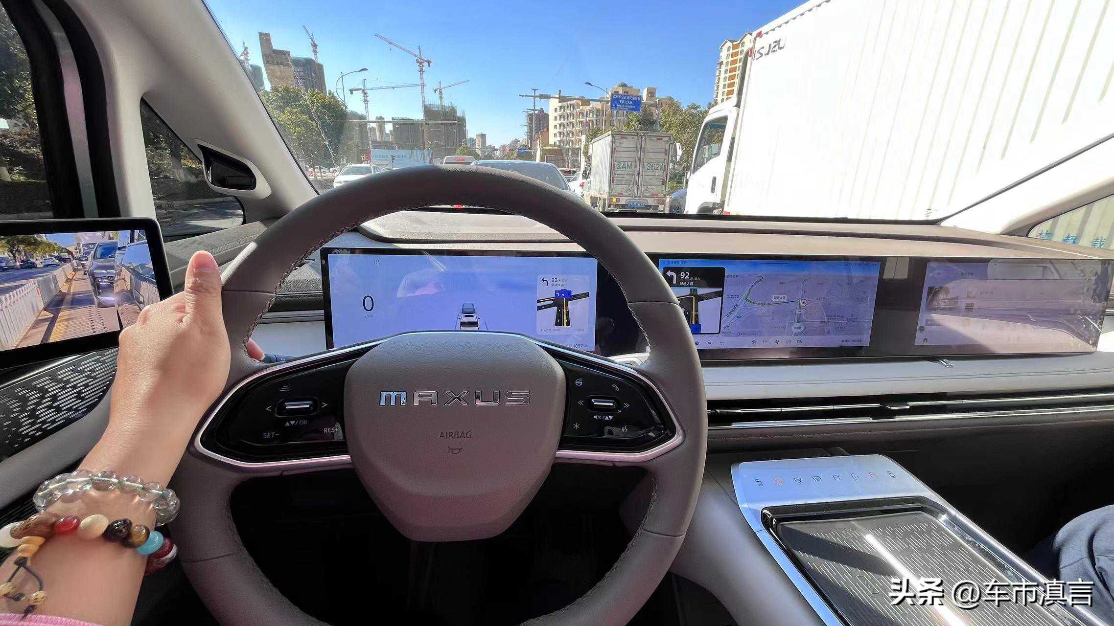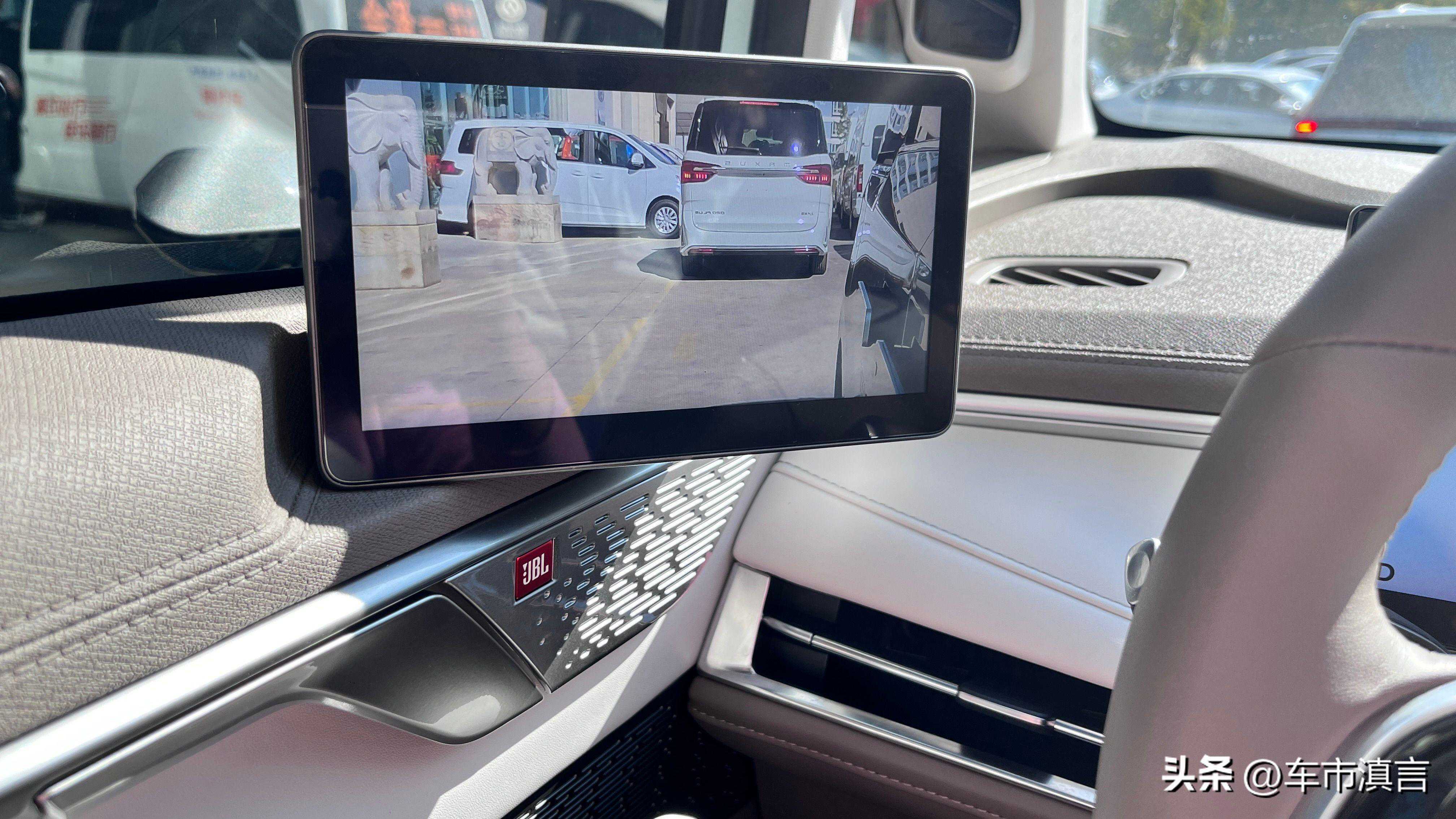 然后是车内空间及配置。打开车门,宽阔舒适的二三排空间令人耳目一新。超大的中控间距不仅利于行李装载,细腻的材质搭配也宛如科技感十足的移动客厅。Nappa真皮座椅、一二排头等舱式座椅、可开启式超大全景天窗、JBL音响;同时搭配高清三联屏、高通8155芯片、智行车机等系统,在安全配置方面无不让人放心、舒适。