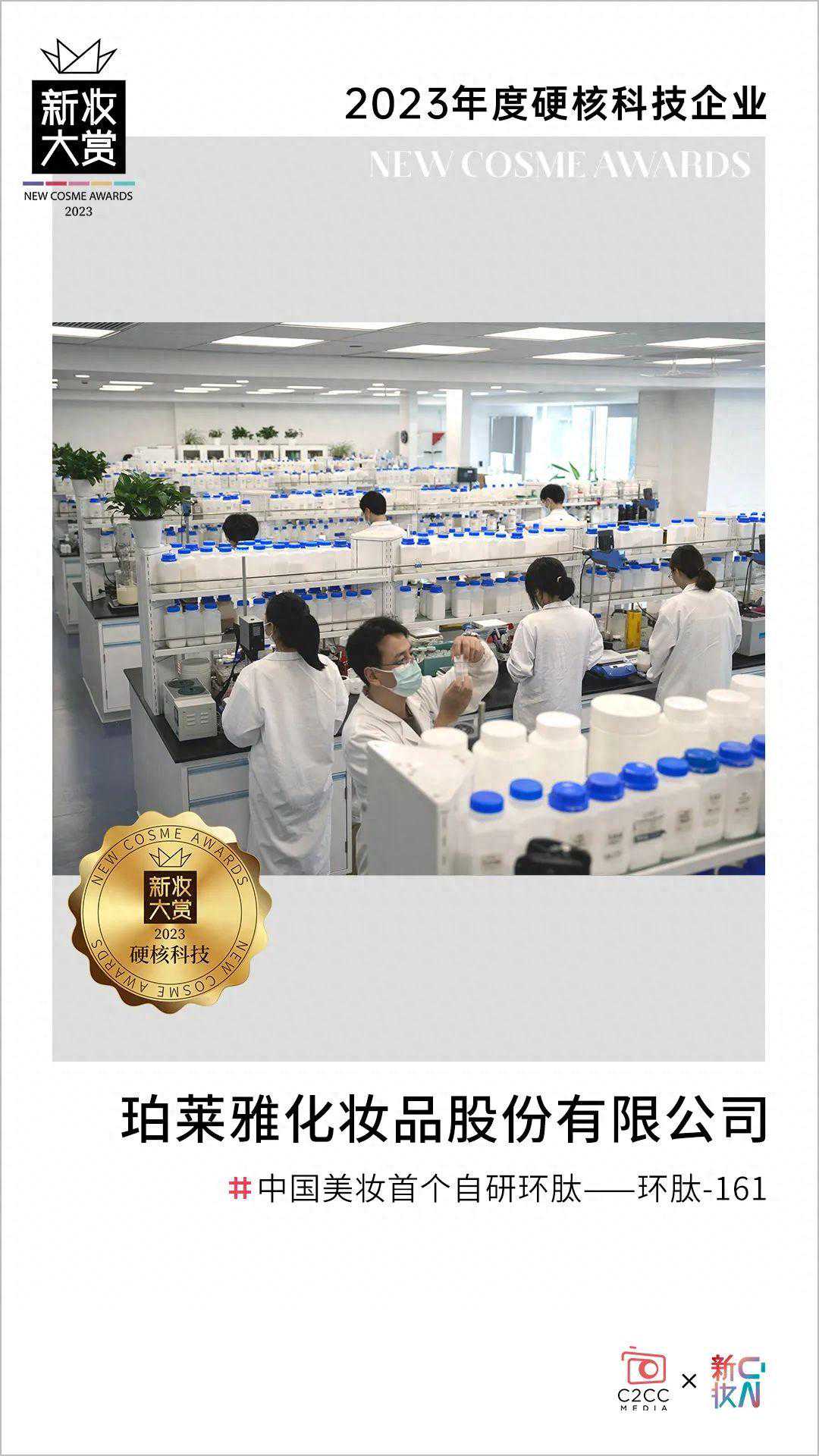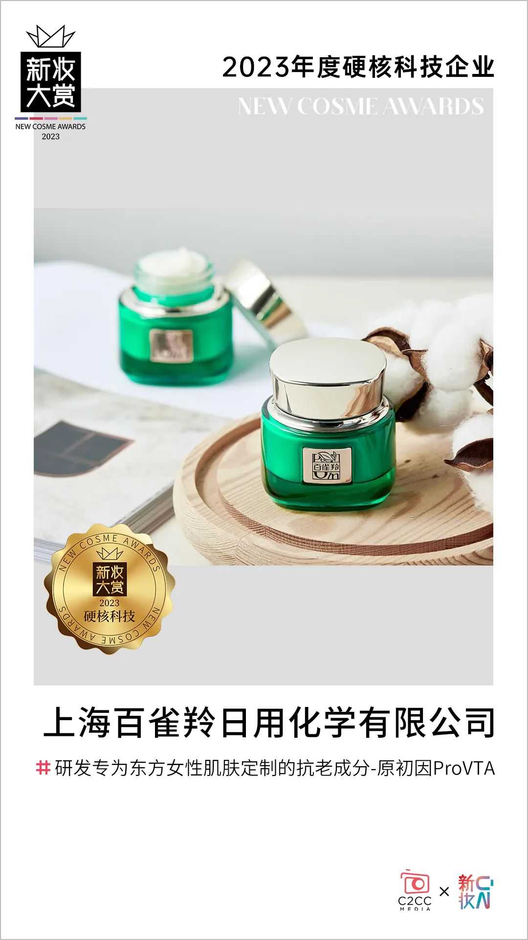 C2CC传媒X新妆发起的全球美妆评选活动——新妆大赏,从口碑、销量、复购和研发等维度,评选出了“2023年度新妆大赏硬核科技企业”榜单(排名不分先后)。此次获奖的硬核科技企业,在科研端具有着较强实力和影响力,在创新原料开发、专研成分运用、特大技术成果、科研团队建设和投入等方面领先行业,在特殊功效、专利技术等方面形成科技壁垒,助力品牌在细分领域位列TOP,并深受消费者青睐。