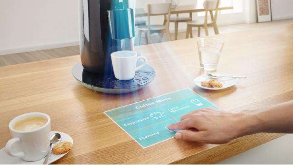 整个平台的交互是由人的触摸或者声音来控制,操作台上方悬挂的投影器能在台面显示食物营养标签、烹饪菜谱和细致到以“秒”为单位的步骤流程,让你的烹饪过程变得简单而便捷。同时,操作台集成感应炉具,意味着你再也不用在炉台与案台之间奔波了。