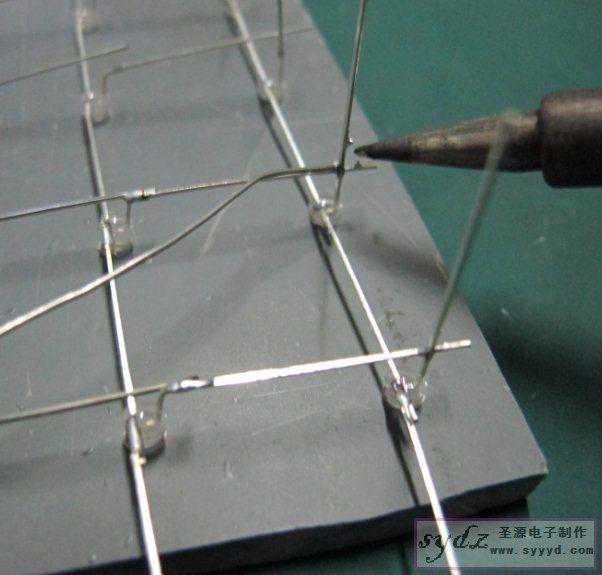 焊接好的LED负极。要焊接这样的LED,为8列