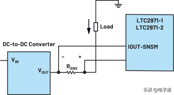 使用LTC2971-1或LTC2971-2监测负电源的输出电流是一种非常简单的解决方案。它们是都双通道器件,LTC2971-2的两个通道可以检测60V电压轨上的电流。LTC2971-1只能检测通道1的负电轨上的电流。