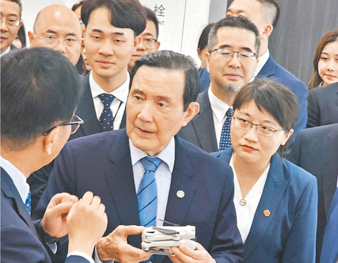 抵达大疆展厅后,马英九一行参观了由大疆研发并生产的行业无人机、农业无人机、影像产品等。“这是我们推出的折叠式无人机,只有249克。”讲解员举起一个巴掌大小的无人机,顿时吸引了参访团成员的目光,“那不就相当于一部手机的重量!”