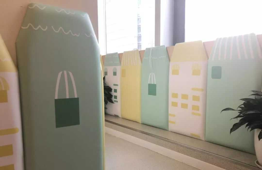 在齿科、儿童保健的候诊区,墙上、柱子上都贴着卡通海绵墙纸,防止某些太“活跃”的娃不小心撞伤。