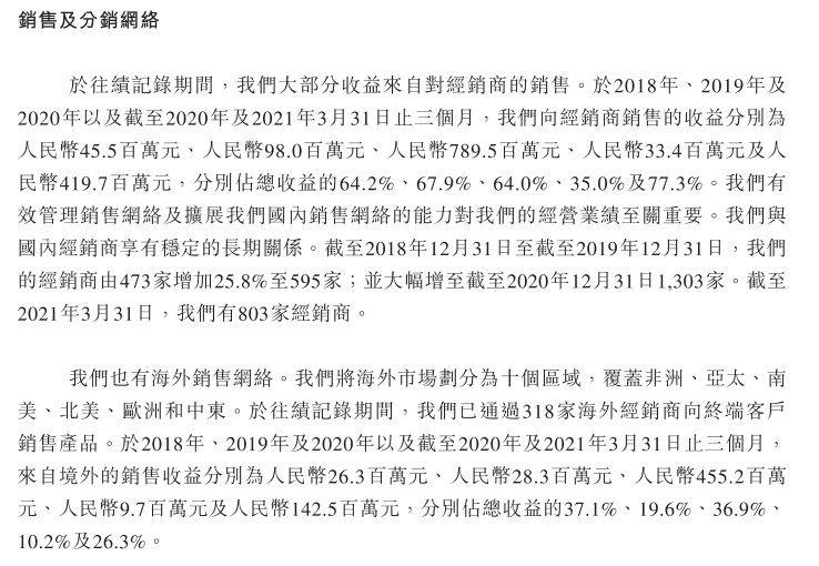 可以看出,2018年至2020年,博日科技的经销商数量持续在增加,但截至2021年3月末,其经销商的数量却较2020年末减少了500名。
