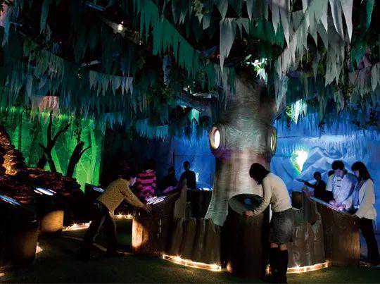 神秘的“命运森林”在诸多科技感满满的项目中,似乎显得格外与众不同。这里回荡着缥缈空灵的乐律,忽明忽暗的光点在树枝间闪闪烁烁。在科幻的世界遨游之余,步入古老幽深的森林,拨开迷雾、卜算未来。