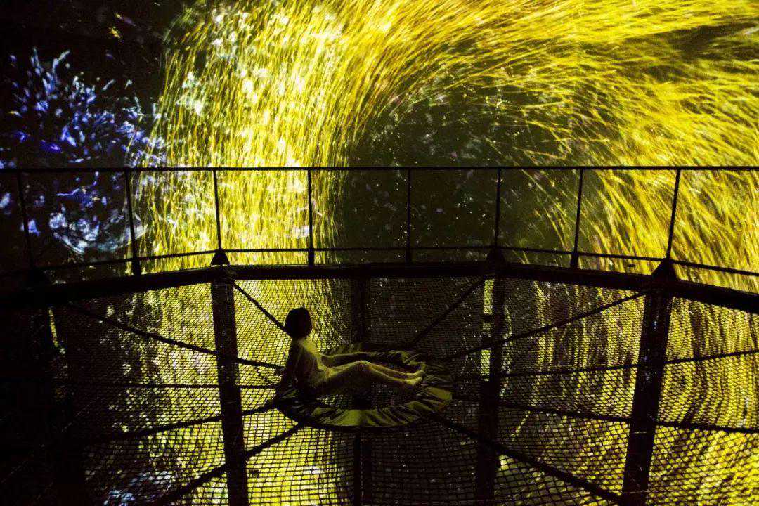 充满互动感的作品“运动森林”,邀请人们通过自己身体的运动和感知去探索世界。当人们上下跳跃时,散落的星尘相互汇聚,形成了炽热的恒星和耀眼的星云——每个人都创造出了一整个五彩斑斓、美不胜收的宇宙。