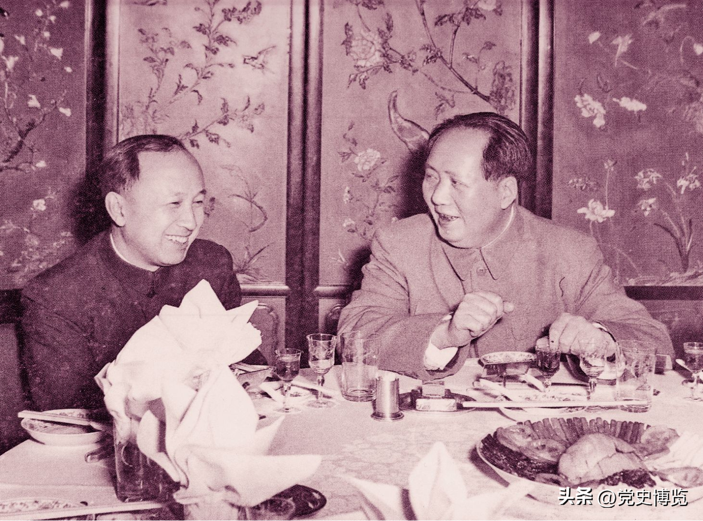 1956年2月,毛泽东与钱学森在宴会上交谈