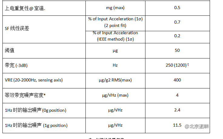 等效带宽噪声密度[µg/√Hz]-A准则,通过将传感器的输出RMS除以带宽的平方根来计算.