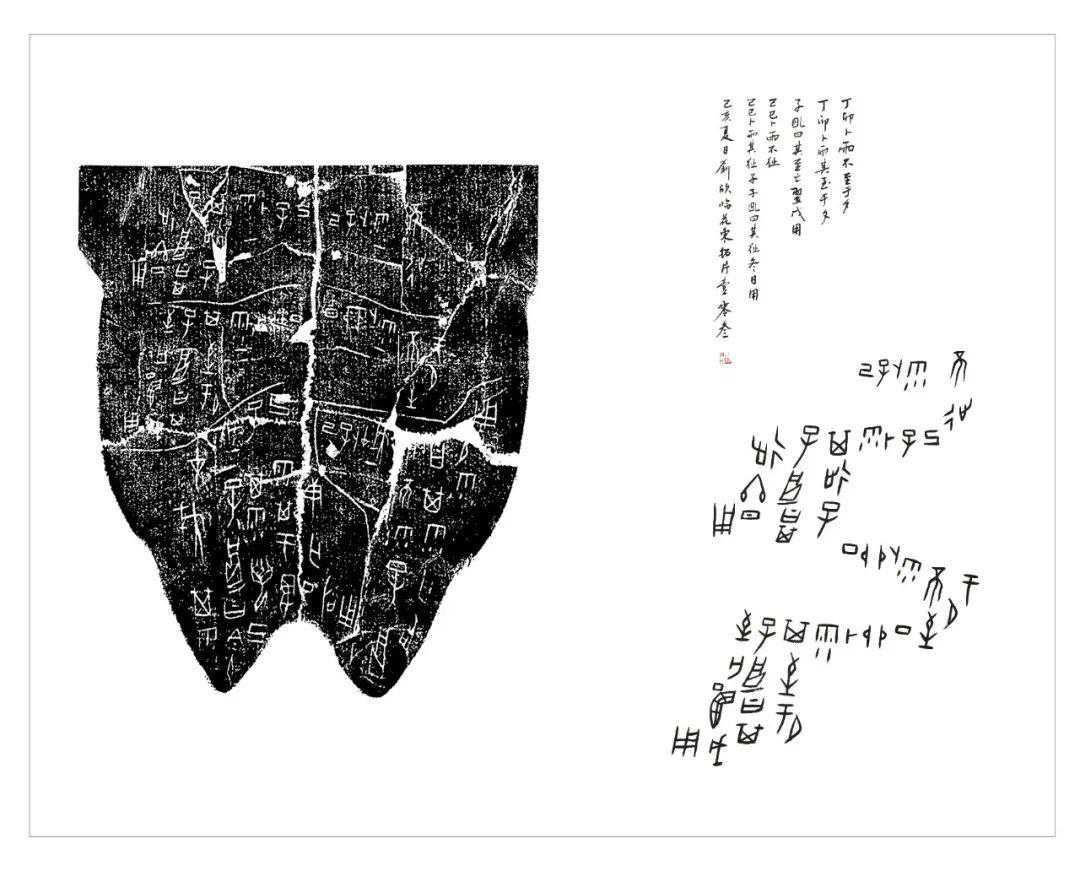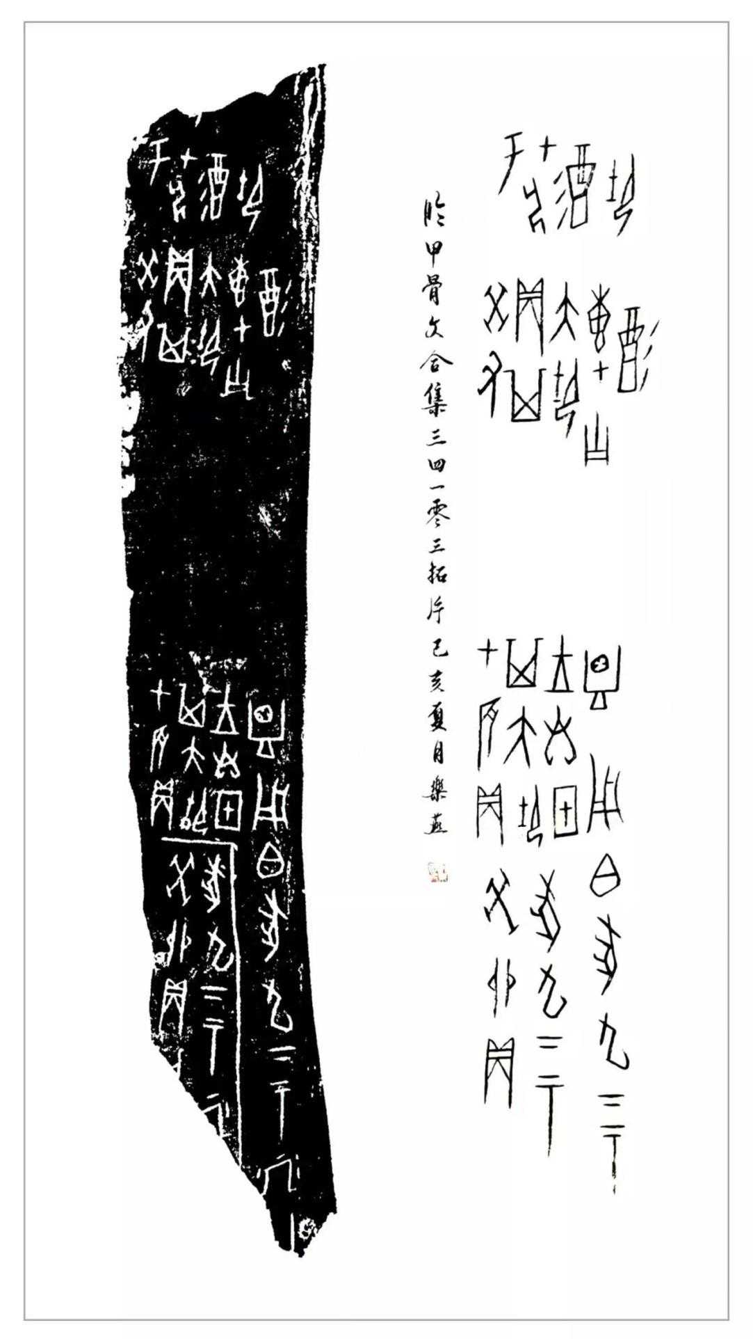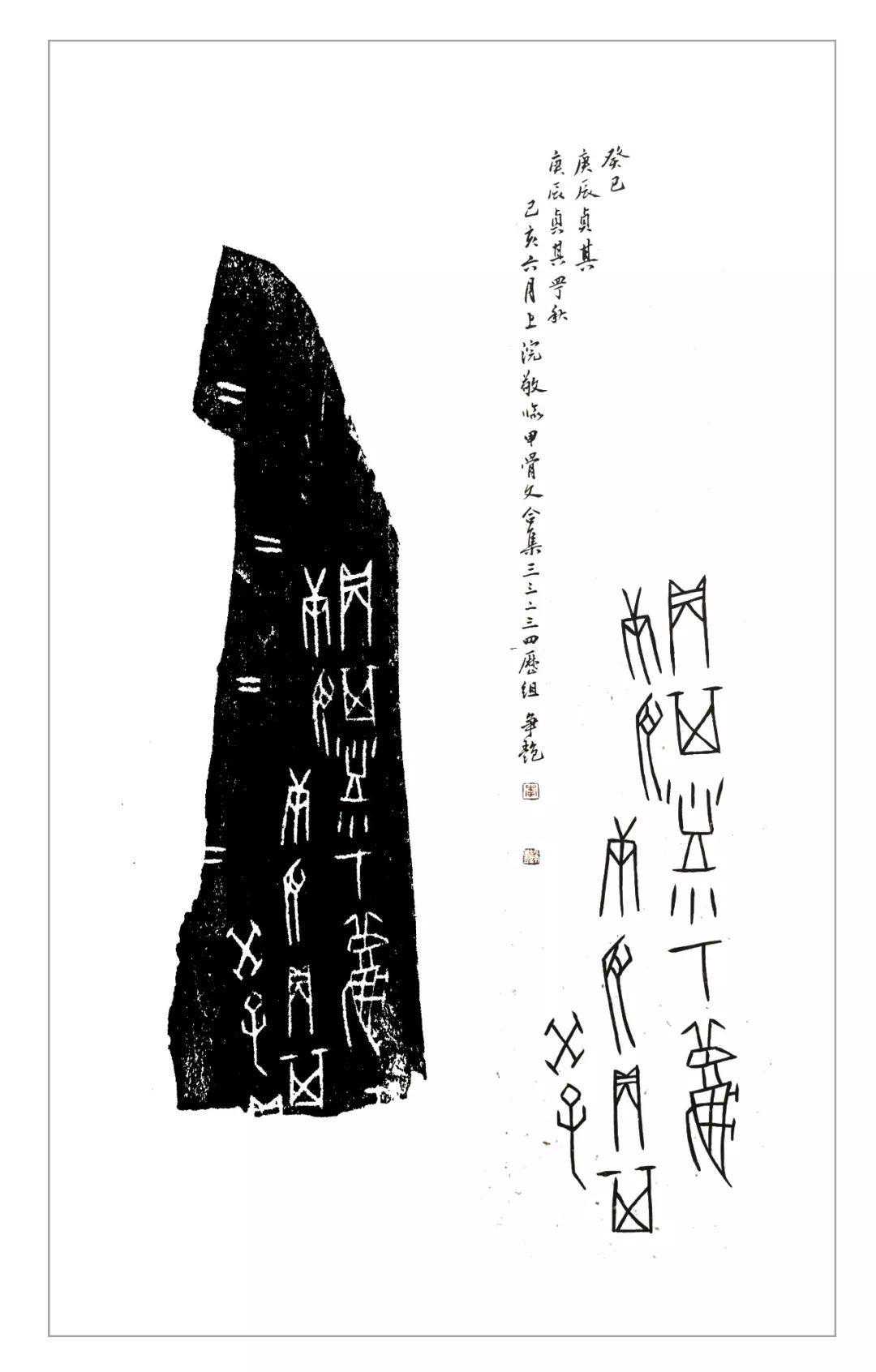 学习甲骨文书法应从甲骨文最本真的状态去书写,不能一味为追求美,用其他笔法去改造甲骨文。为了保持甲骨文的原汁的味道,必须临习拓片,通过临拓,真实感受甲骨文的刀刻味道、字形特点、章法构思等等。这是学好甲骨文书法的必经之路,也是书写好甲骨文书法最有效方法。